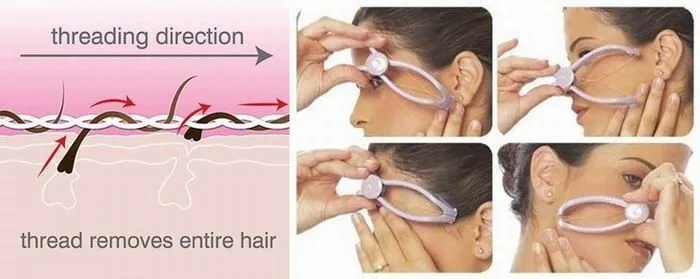 Весь процесс состоит в том, чтобы стянуть волоски вместе с луковицами 100% хлопковой нитью. Она может обрабатывать даже невидимые глазу волосы, а также очень короткие. Нить пришла с Дальнего Востока и в настоящее время является одной из самых популярных косметических тенденций в Западной Европе.